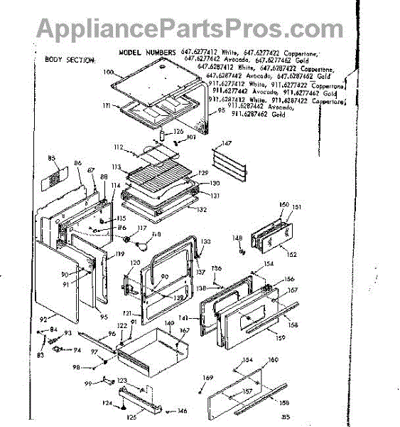 Parts for Kenmore 647.6287412 (6476287412, 647 6287412): Body Section Parts