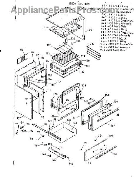 Parts for Kenmore 647.6327461 (6476327461, 647 6327461): Body Section Parts