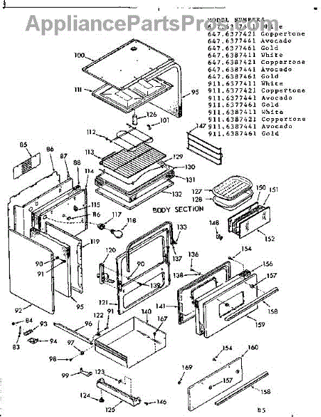 Parts for Kenmore 647.6377441 (6476377441, 647 6377441): Body Section Parts