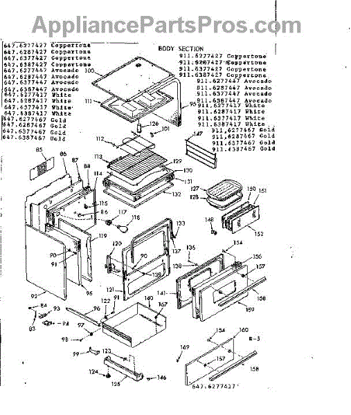 Parts for Kenmore 647.6387447 (6476387447, 647 6387447): Body Section Parts