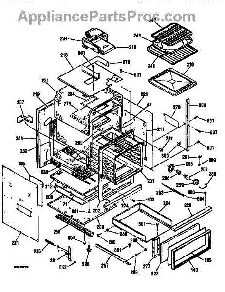 Oven range body assembly forms the main cabinet structure. Replace if cracked, damaged, or corroded. Essential structural component for wall ovens and ranges.