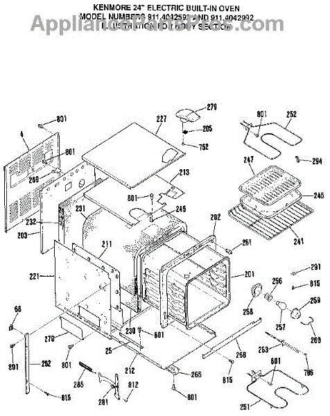 Parts for Kenmore 911.4042592 (9114042592, 911 4042592): Body Section Parts
