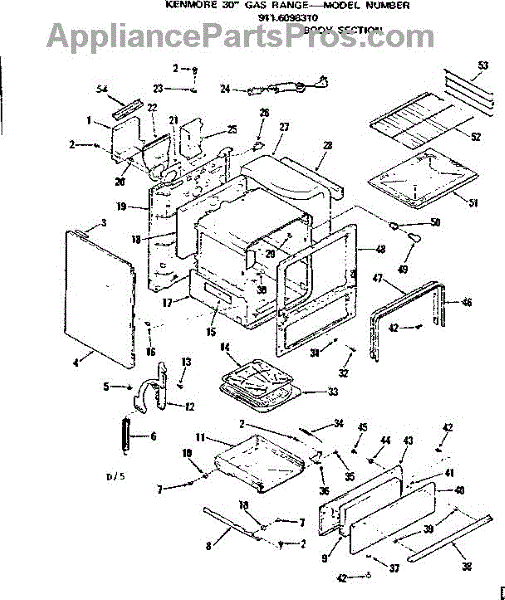 Parts for Kenmore 911.6098310 (9116098310, 911 6098310): Body Section Parts