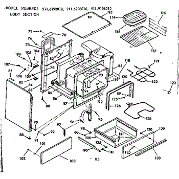 Parts for Kenmore 911.6208010 (9116208010, 911 6208010): Body Section Parts