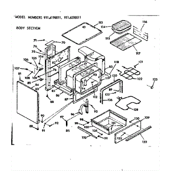 Parts for Kenmore 911.6208011 (9116208011, 911 6208011): Body Section Parts