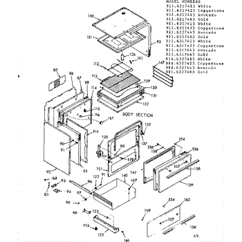 Parts for Kenmore 911.6217463 (9116217463, 911 6217463): Body Section Parts