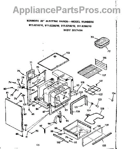 Parts for Kenmore 911.6218210 (9116218210, 911 6218210): Body Section Parts