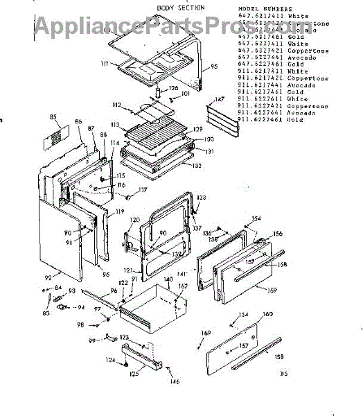 Parts for Kenmore 911.6227441 (9116227441, 911 6227441): Body Section Parts
