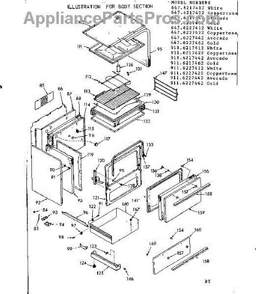 Parts for Kenmore 911.6227462 (9116227462, 911 6227462): Body Section Parts