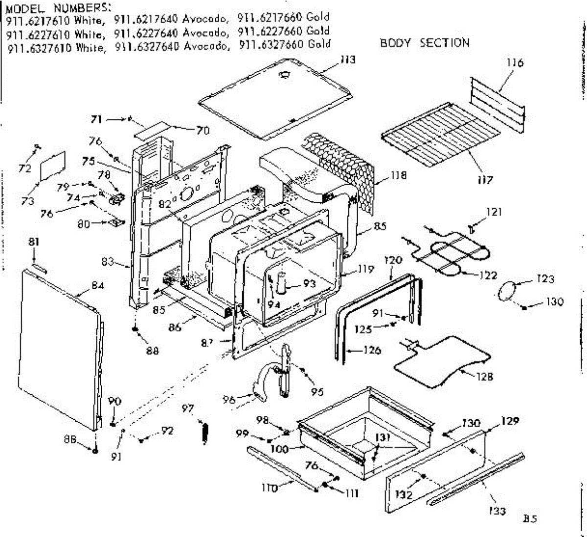 Parts for Kenmore 911.6227660 (9116227660, 911 6227660): Body Section Parts