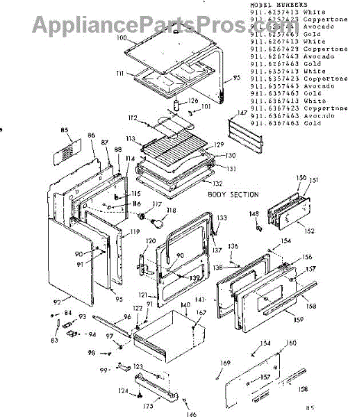 Parts for Kenmore 911.6267443 (9116267443, 911 6267443): Body Section Parts