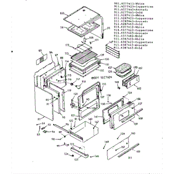 Parts for Kenmore 911.6277423 (9116277423, 911 6277423): Body Section Parts
