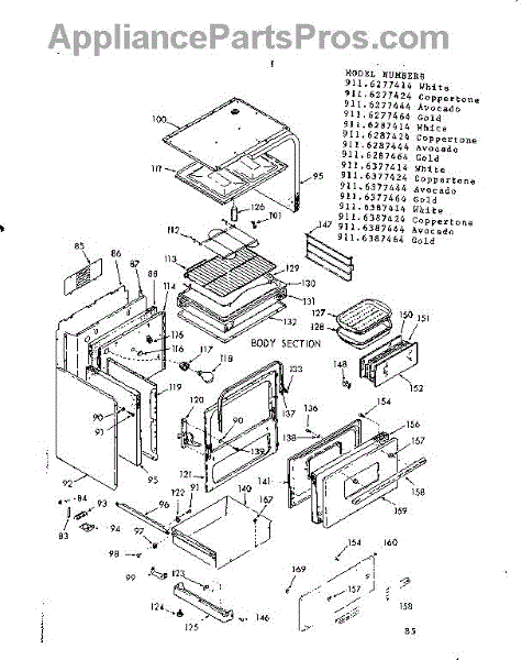 Parts for Kenmore 911.6277444 (9116277444, 911 6277444): Body Section Parts