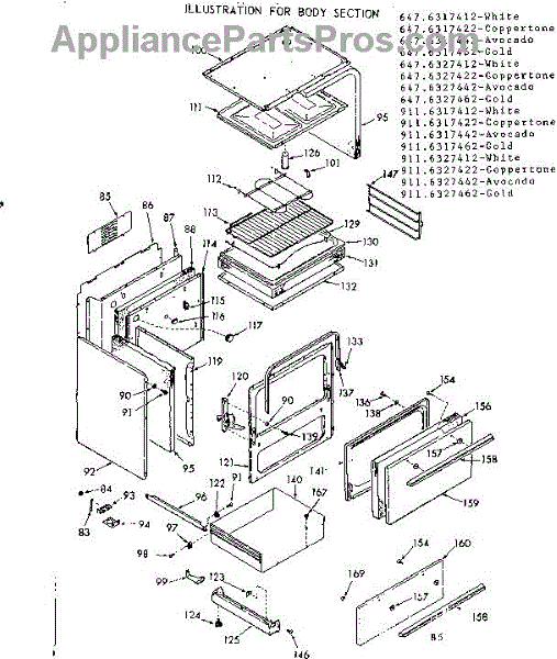 Parts for Kenmore 911.6317462 (9116317462, 911 6317462): Body Section Parts
