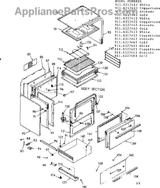 Parts for Kenmore 911.6317463 (9116317463, 911 6317463): Body Section Parts