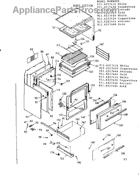 Parts for Kenmore 911.6327424 (9116327424, 911 6327424): Body Section Parts