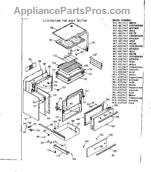 Parts for Kenmore 911.6327467 (9116327467, 911 6327467): Body Section Parts