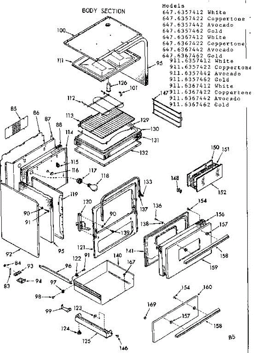 Parts for Kenmore 911.6357422 (9116357422, 911 6357422): Body Section Parts