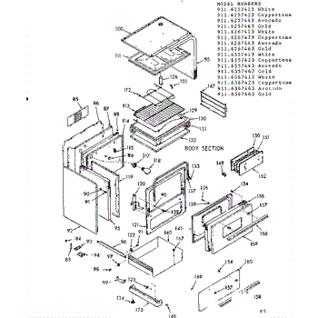 Parts for Kenmore 911.6367423 (9116367423, 911 6367423): Body Section Parts
