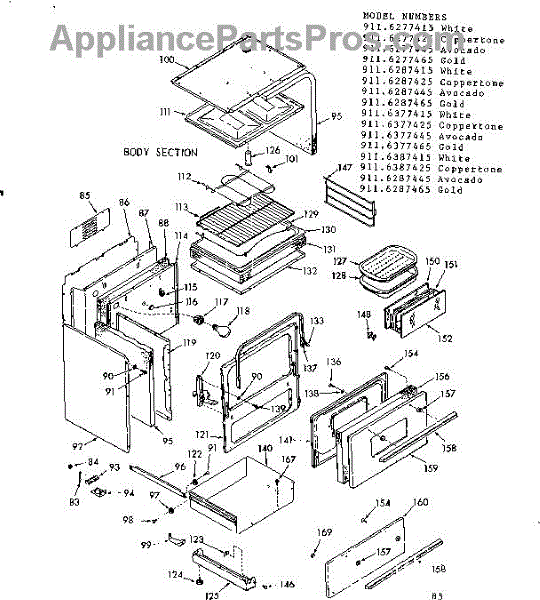 Parts for Kenmore 911.6377445 (9116377445, 911 6377445): Body Section Parts