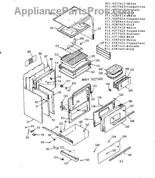 Parts for Kenmore 911.6377463 (9116377463, 911 6377463): Body Section Parts