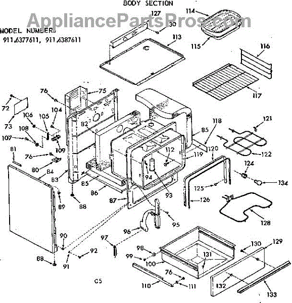 Parts for Kenmore 911.6387611 (9116387611, 911 6387611): Body Section Parts
