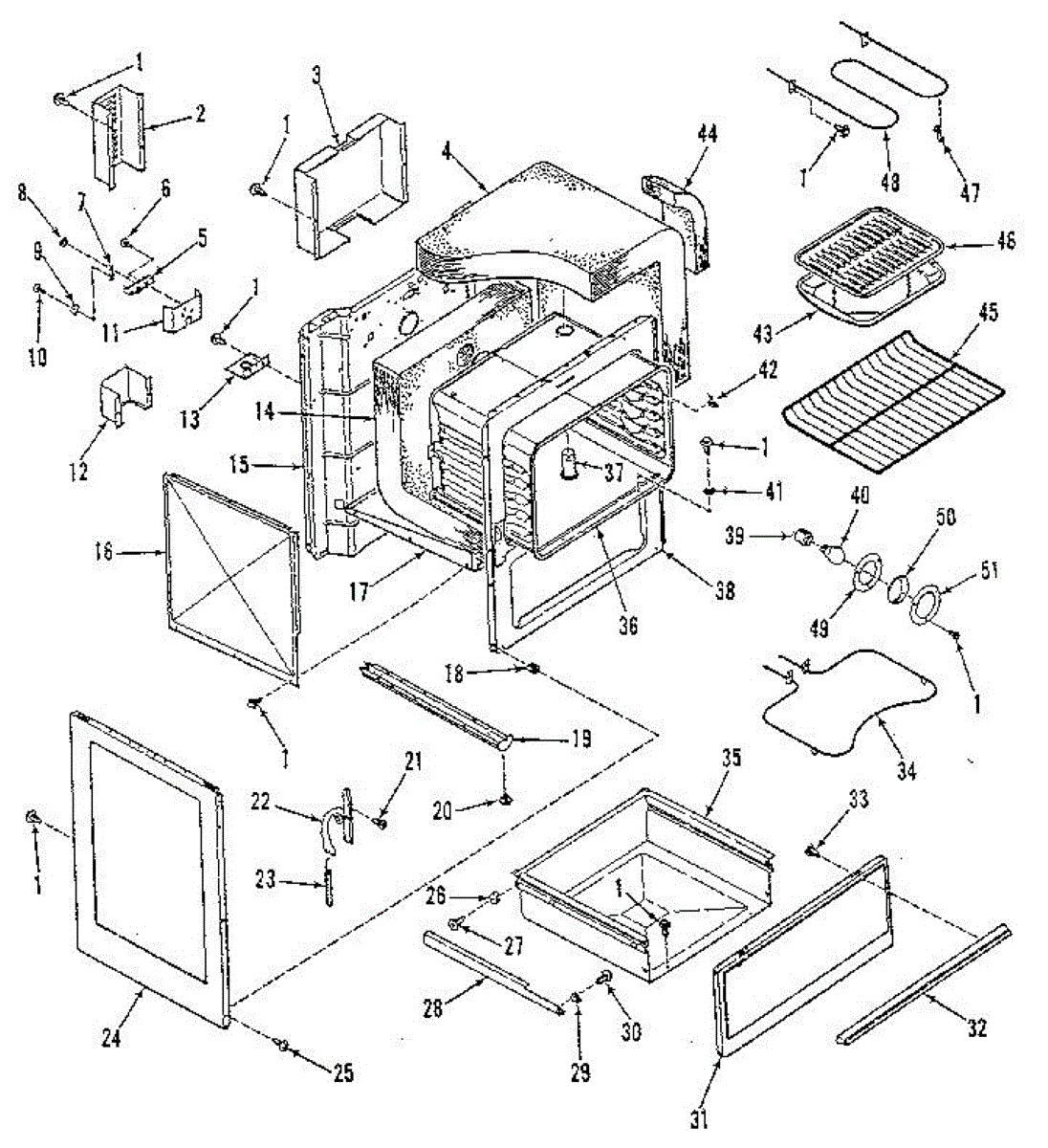 Broiler pan for ranges and ovens. Installs in main oven cavity to hold food under broiler element. Replace if cracked, warped, or heavily stained.