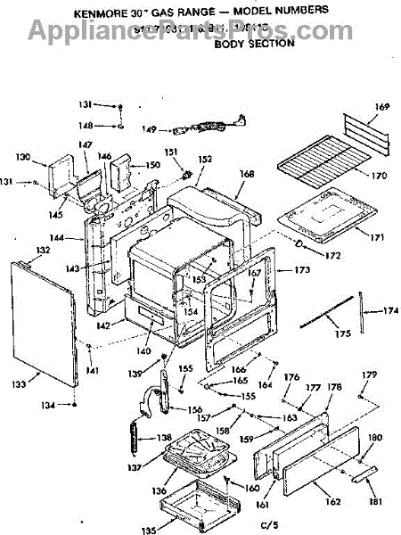 Parts for Kenmore 911.7108113 (9117108113, 911 7108113): Body Section Parts