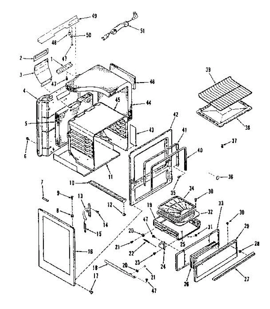 Left side oven door hinge provides smooth opening and closing operation. Replace if cracked, seized, worn, or binding. Mounts to oven cavity interior.