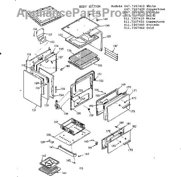 Parts for Kenmore 911.7207420 (9117207420, 911 7207420): Body Section Parts