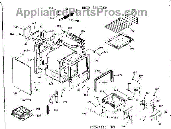 Parts for Kenmore 911.7247520 (9117247520, 911 7247520): Body Section Parts