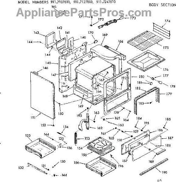 Parts for Kenmore 911.7247810 (9117247810, 911 7247810): Body Section Parts