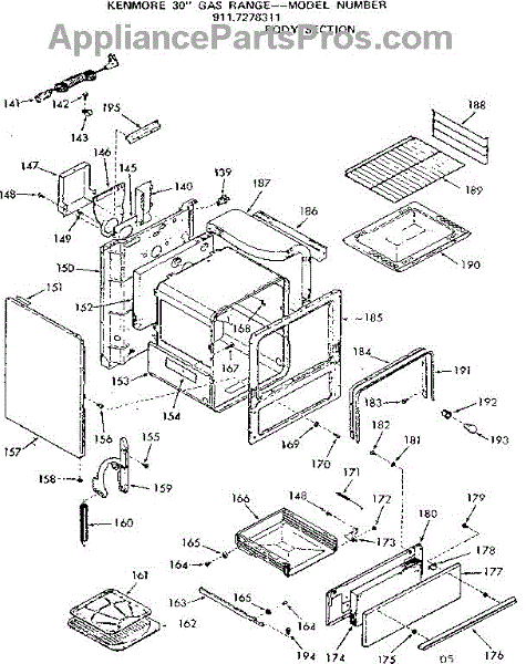 Parts for Kenmore 911.7278311 (9117278311, 911 7278311): Body Section Parts