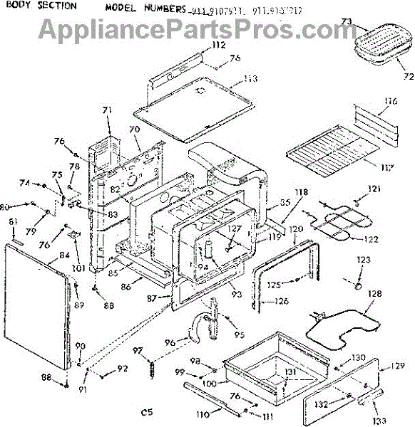 Parts for Kenmore 911.9107912 (9119107912, 911 9107912): Body Section Parts