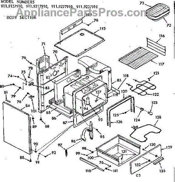 Parts for Kenmore 911.9137910 (9119137910, 911 9137910): Body Section Parts