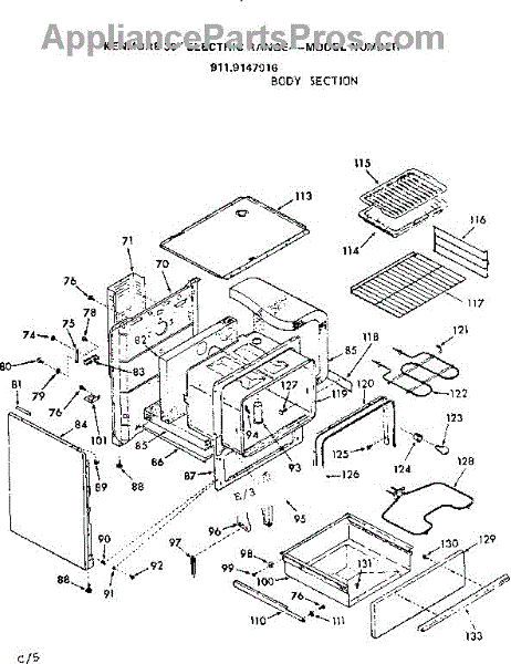 Parts for Kenmore 911.9147916 (9119147916, 911 9147916): Body Section Parts