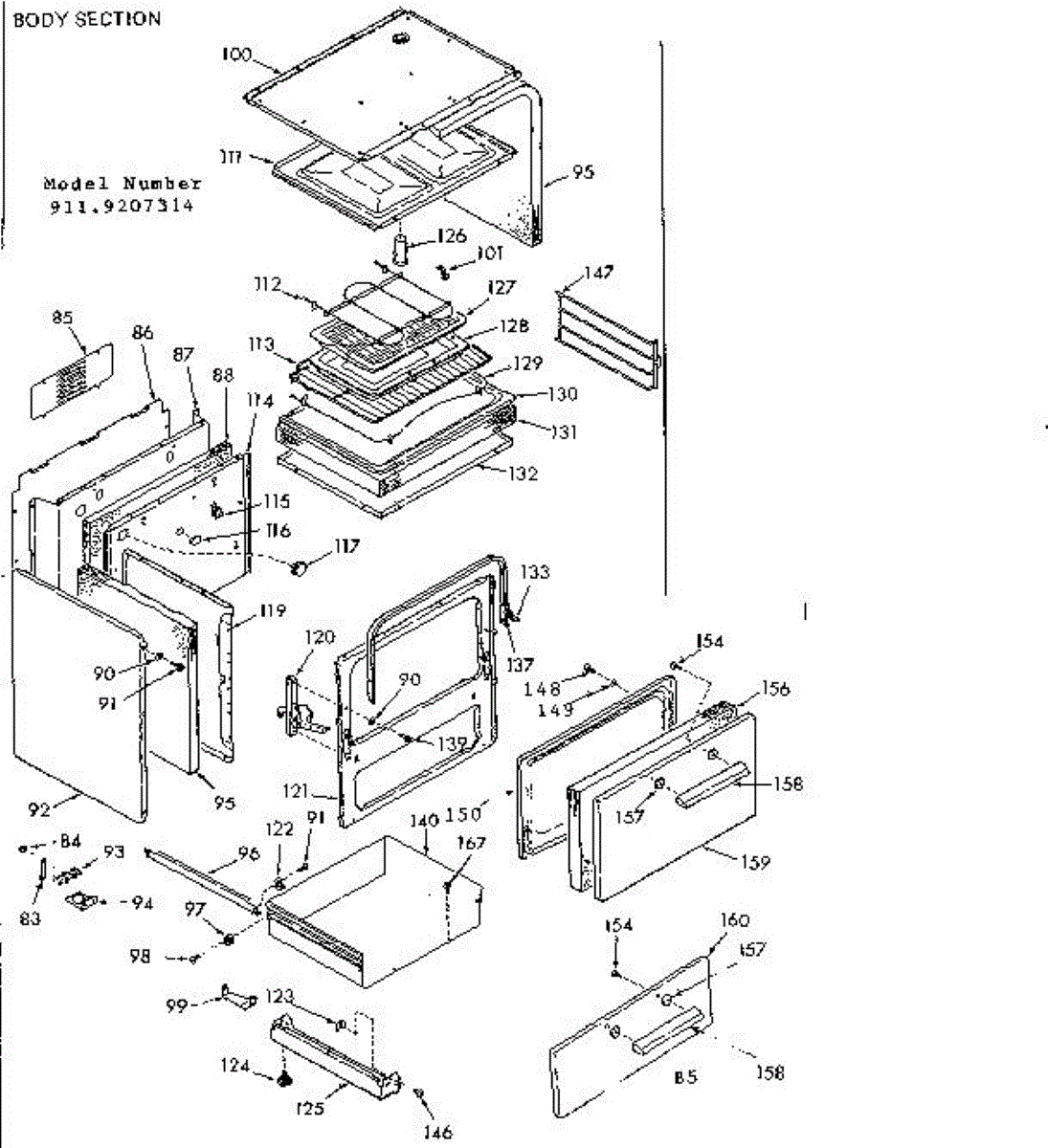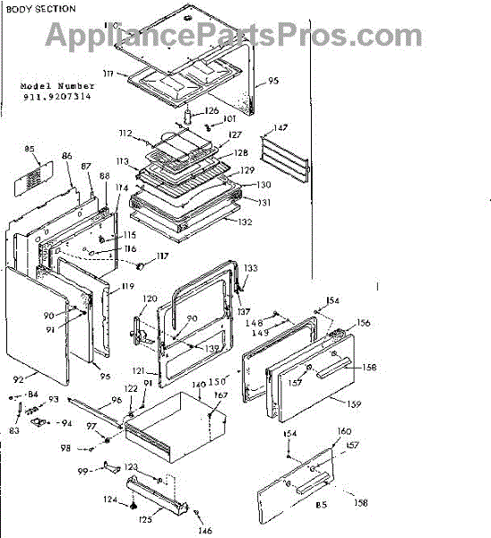 Parts for Kenmore 911.9207314 (9119207314, 911 9207314): Body Section Parts
