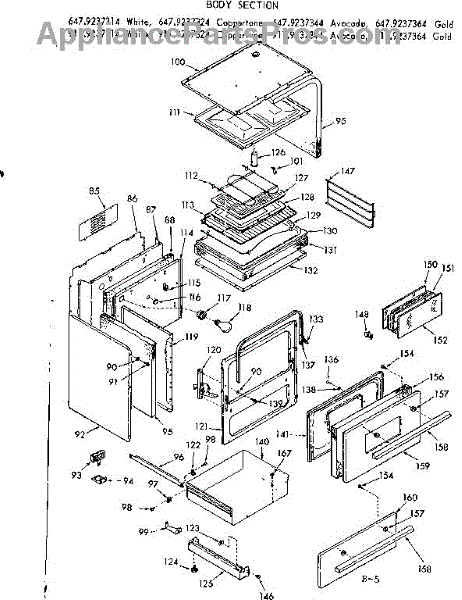 Parts for Kenmore 911.9237324 (9119237324, 911 9237324): Body Section Parts
