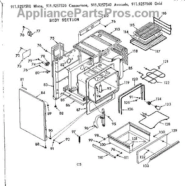 Parts for Kenmore 911.9257510 (9119257510, 911 9257510): Body Section Parts