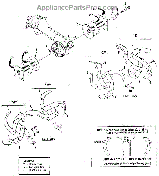 Parts for Craftsman 98729908: Bolo Tine Assemblies (Figure 7) Parts