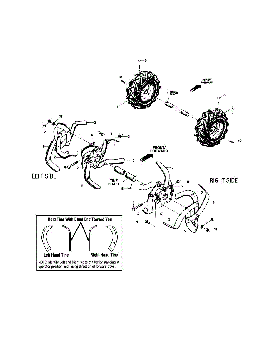 Replace worn or damaged tiller tines that fail to properly dig or turn soil. Direct replacement part restores tilling performance and soil cultivation.