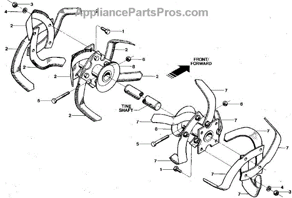This left-hand bolo tine is a replacement part used for a tiller. This part is constructed of black metal and requires a wrench set for installation. This tine easy to install. The left-hand bolo tine attaches to the left tine holder and is used to dig up dirt in the area being tilled. This is a genuine OEM part sourced directly from the manufacturer and is sold individually.The left-hand bolo tine should be replaced if it is damaged or no longer working. If the tines become so worn that they are pointed, the tiller will not perform acceptably. The tiller will not dig as deeply nor will chop garden residues and cover crops. The tines are typically to be replaced as a set rather than individually.To replace the tines, begin by removing the sheer bolt with a wrench that connects the tine assembly to the tine shaft. Next by using either a wrench or small impact driver, remove all nuts and bolts disconnecting the tines from the tine holder. Replace the left-hand and right-hand tines, tightening with either a wrench or small impact driver, and reattach the tine holder assembly to the tiller securing it with the sheer bolt. The tines should slant into the inside of the tine holder. The tiller is now ready for use. This part is manufactured by Troy-Bilt and MTD.