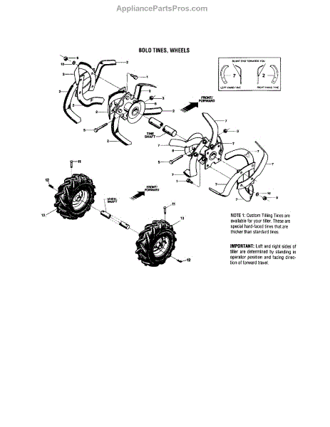 Parts for Troy-Bilt 21A-664D063: Bolo Tines, Wheels Parts
