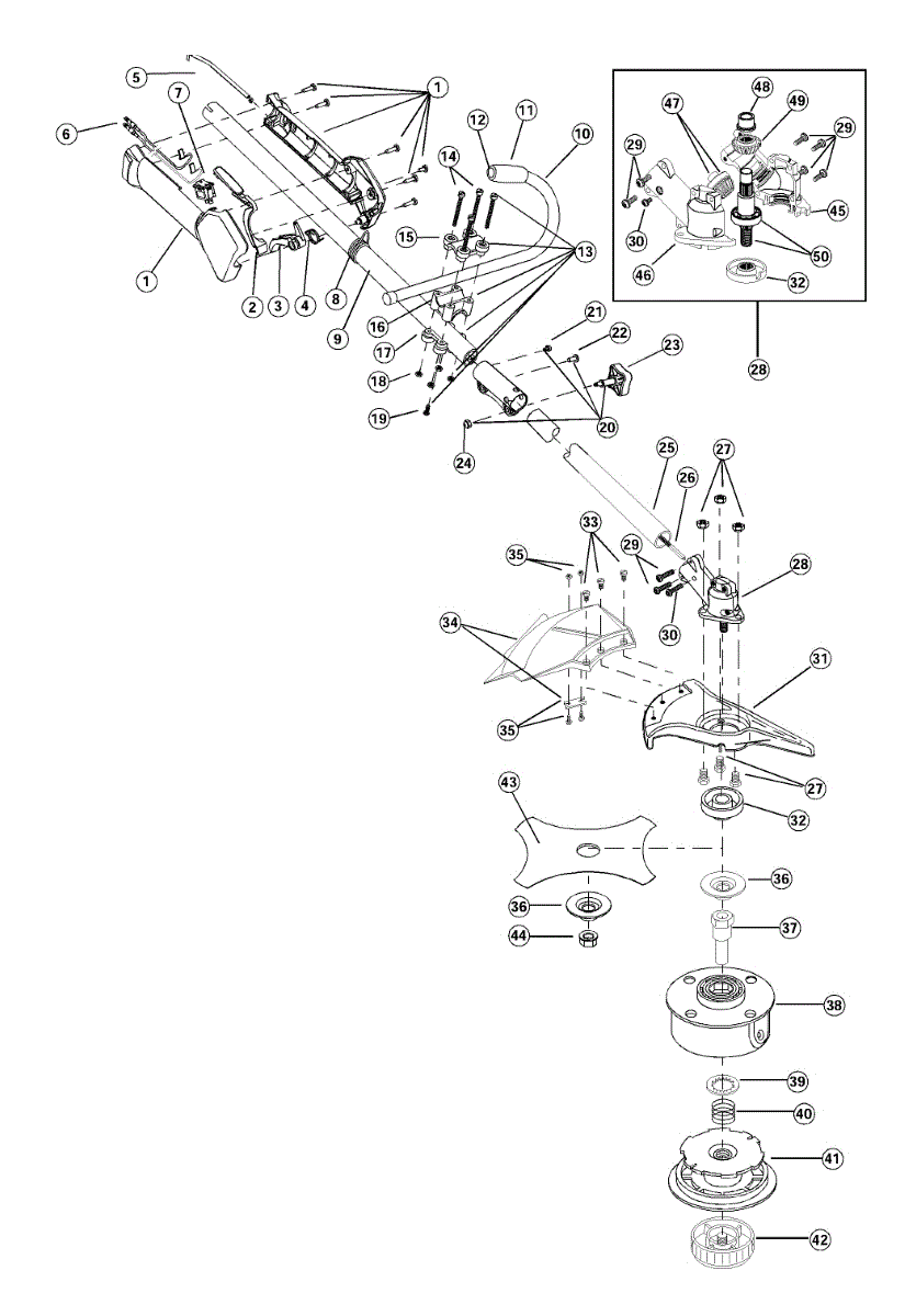 This coupler features a split-boom design that includes the knob, coupler, and the screws required to attach the upper shaft and lower boom before using the trimmer. Because of constant exposure and potential debris impacts, the coupler can become damaged over time and with regular use. The knob and screws can also become damaged or lost, which would require replacing the entire unit with an OEM replacement like the one here. This genuine OEM drive shaft coupler is manufactured by RYOBI and designed for use with their trimmers, as well as machines from MTD, Yard Man, Yard Machines, Bolens, Troy-Bilt, and Cub Cadet. It can also be used with select models of edgers and pruners from these brands. This coupler is sold as an individual assembly with all of the pieces required to complete the installation. The shaft is made of durable metal and the knob is a sturdy plastic piece. It will require a screwdriver with a Philips head to replace this part. Always wear gloves when working on lawn and garden equipment.