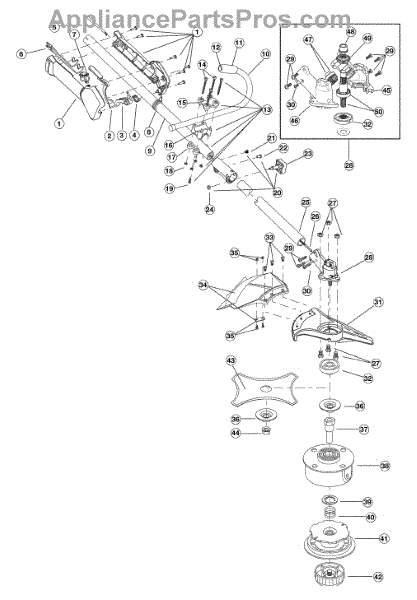 This part is a replacement handle bracket assembly. This is a genuine OEM part made by MTD and has been sourced directly from the manufacturer. It is intended to replace a defective or broken handle bracket assembly in line trimmers.This handle bracket assembly ensures that the line trimmer handlebars are securely and properly attached to the drive shaft. This part will require replacement if corroded, faulty, or broken in any way. Wear work gloves to protect the hands and check that equipment is powered off and cooled down before starting the repair process. For more accurate information on how and where to use this handle bracket assembly, the appropriate owner's manual and equipment diagrams should be referred to. This handle bracket assembly is a genuine OEM part made of durable metal and is sold individually. It is suitable for use with line trimmer models that have been manufactured by MTD, Craftsman, Troy-Bilt, and other brands.