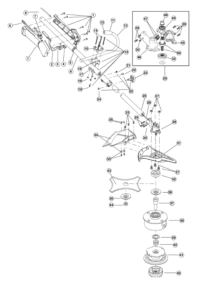 This coupler features a split-boom design that includes the knob, coupler, and the screws required to attach the upper shaft and lower boom before using the trimmer. Because of constant exposure and potential debris impacts, the coupler can become damaged over time and with regular use. The knob and screws can also become damaged or lost, which would require replacing the entire unit with an OEM replacement like the one here. This genuine OEM drive shaft coupler is manufactured by RYOBI and designed for use with their trimmers, as well as machines from MTD, Yard Man, Yard Machines, Bolens, Troy-Bilt, and Cub Cadet. It can also be used with select models of edgers and pruners from these brands. This coupler is sold as an individual assembly with all of the pieces required to complete the installation. The shaft is made of durable metal and the knob is a sturdy plastic piece. It will require a screwdriver with a Philips head to replace this part. Always wear gloves when working on lawn and garden equipment.