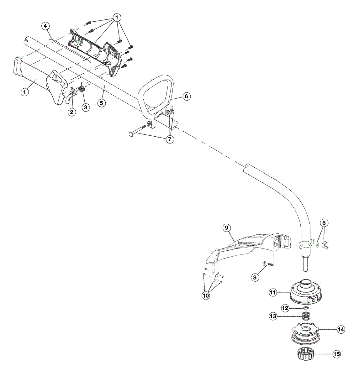 Replacement mounting hardware for line trimmer guards. Secures the protective guard to the trimmer shaft. Order new hardware if original bolts, nuts, or clips are lost, stripped, or damaged.