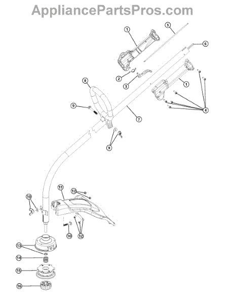 Replacement mounting hardware for line trimmer guards. Secures the protective guard to the trimmer shaft. Order new hardware if original bolts, nuts, or clips are lost, stripped, or damaged.