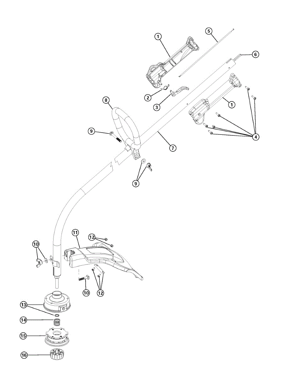 Throttle control cable for gas leaf blowers and line trimmers. Replaces worn, frayed, or broken cables that prevent proper throttle operation.
