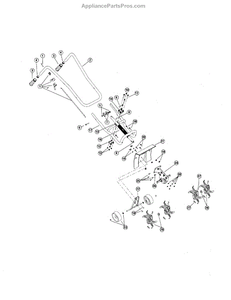The gearbox assembly is found in tillers and is where the gears are housed that supply the drive and torque for the unit. The gearbox assembly is designed to provide protection for the gears and the other internal components, which are responsible for transferring energy to increase torque and control speed. Although it is made of durable materials, it may become worn or damaged over time and require a replacement. This genuine OEM gearbox assembly is produced to exact manufacturer standards and made to be used in compatible machines from Yard-Man, Ryobi, Yard Machines, Bolens, Cub Cadet, and MTD. The gearbox assembly is sold as an individual assembly and comes ready to install with the four screws required for installation. Be sure to wear gloves and disconnect the power from the tiller before performing any repairs. Allow the unit to cool completely and follow the diagram to ensure that the replacement part fits exactly. This assembly will require a screwdriver and wrench set to replace.